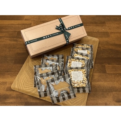 中山道にちなんだ2種類のお菓子セット。 1つ目は、らくだクッキーです。御嵩町内で生産されている中鉄砲大豆のきな粉を使用しています。一般的なきな粉よりも、味、香りの香ばしさをより感じることができます。 2つ目は石畳おこしです。御嵩で生産された米(御嵩米)をポン菓子にしたものと、ピーナッツ、カカオニブを合わせ、キャラメルでコーティング、チョコレートで固めた菓子です。