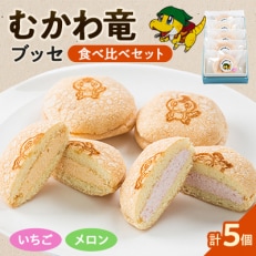 北海道むかわ町 むかわ竜ブッセ イチゴクリーム(2個)&メロンクリーム(3個)計5個 食べ比べセット