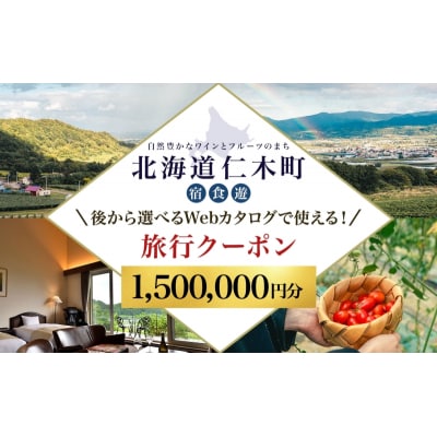 【北海道ツアー】仁木町 後から選べる旅行Webカタログで使える! 旅行クーポン(1,500,000円分) 果実とやすらぎの里 仁木町ステイを満喫! 旅行券 宿泊券 飲食券 体験サービス券