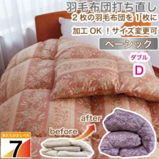 羽毛掛け布団 ダブル 打ち直し 赤系 一層式 リフォーム 柄おまかせ【ベーシックコース】