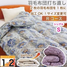 羽毛掛け布団 シングル 打ち直し 青系 肌掛 薄目 夏向け リフォーム 柄おまかせ【Rコース】