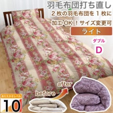 羽毛掛け布団 ダブル 打ち直し 赤系 二層式であたたかい リフォーム 柄おまかせ【ライトコース】
