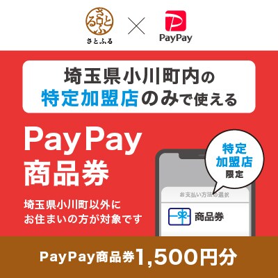 埼玉県小川町 PayPay商品券(1,500円分)※地域内の一部の加盟店のみで利用可