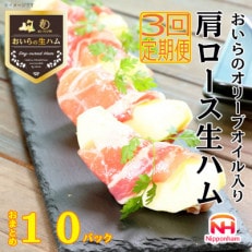 【毎月定期便】おいらの オリーブオイル入り 肩ロース 生ハム おまとめ セット 計 10パック全3回