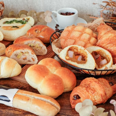 国産小麦100%(北海道産、信州産)、無添加生地で毎日食べても飽きのこない優しい味のパンセットです。