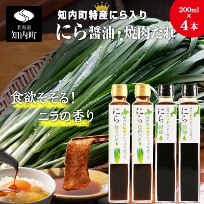 知内町特産☆にら入り醤油・焼肉のたれ 200ml×各2本《スリーエス》