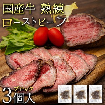 国産牛モモ赤身肉使用 ローストビーフ ブロック 405g(135g×3個)小分け◆真空パック