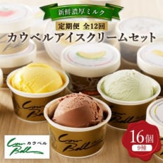 【毎月定期便】カウベルアイスクリーム9種16個セット 新鮮濃厚ミルク 北海道産素材 全12回