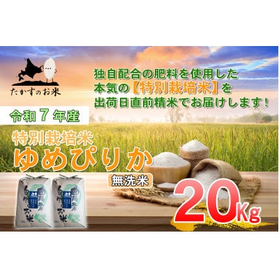 令和7年産新米予約 たかすのお米 特別栽培米 ゆめぴりか 無洗米 20kg(10kg×2)