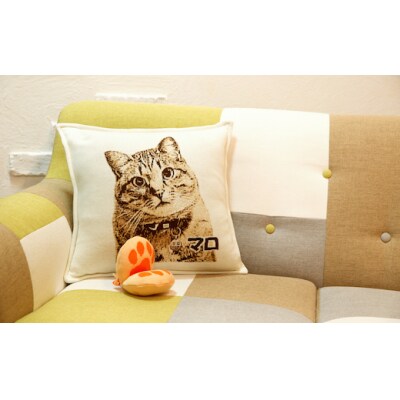 ペットの写真を元に、完全オーダーメイドで作成するオリジナルクッションです。印刷ではなく編み込み模様で作る、世界でただ一つだけの品をお楽しみください。