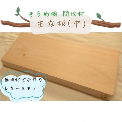"皮むき間伐"という方法によって伐り出された間伐材から製作したまな板です。天然乾燥された木材からひとつひとつ手作りしており、一枚物の無垢材で作られたまな板はサイズが様々な一点モノです。