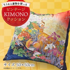 オリジナル ビンテージKIMONOクッションカバー(クッション付き)50cm×50cm ちりめん着物