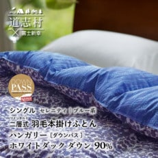【富士新幸謹製】羽毛布団 本掛け シングル[セレニティ・ブルー系] ハンガリーダック ダウン90%