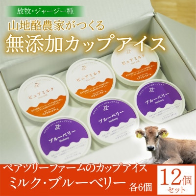 【放牧アイス】ペアツリーファームのカップアイス《ピュアミルク・ブルーベリー 各6個》計12個セット
