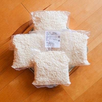 1つ当たりが大きい「匠美鶏」のムネ正肉1kg+モモ正肉1kgセットを計2kg包装しました。