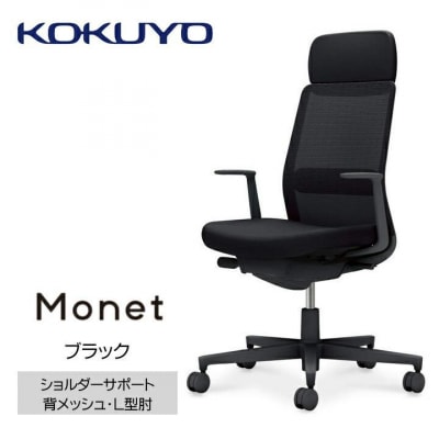 コクヨチェアー モネット(ブラック)/ショルダーサポート・メッシュ・L型肘/カーペット用Wキャスター