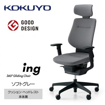 コクヨチェアー イング(ソフトグレー・本体黒)/ヘッドレスト・クッション/カーペット用(Wキャスター
