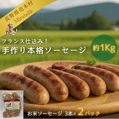 【ボリュームたっぷり約1Kg】 フランス仕込み手作り冷凍ソーセージ(お米ソーセージ) 3本×2パック